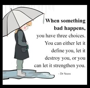 Dr. Seuss wrote, “When something bad happens, you have three choices. You can either let it define you, let it destroy you, or you can let it strengthen you.”
